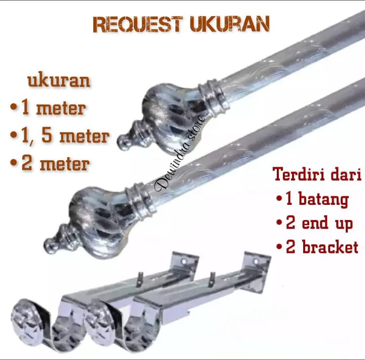 Batang Gorden Full Set Silver Ukuran 50 100 150 200 Cm Lazada Indonesia